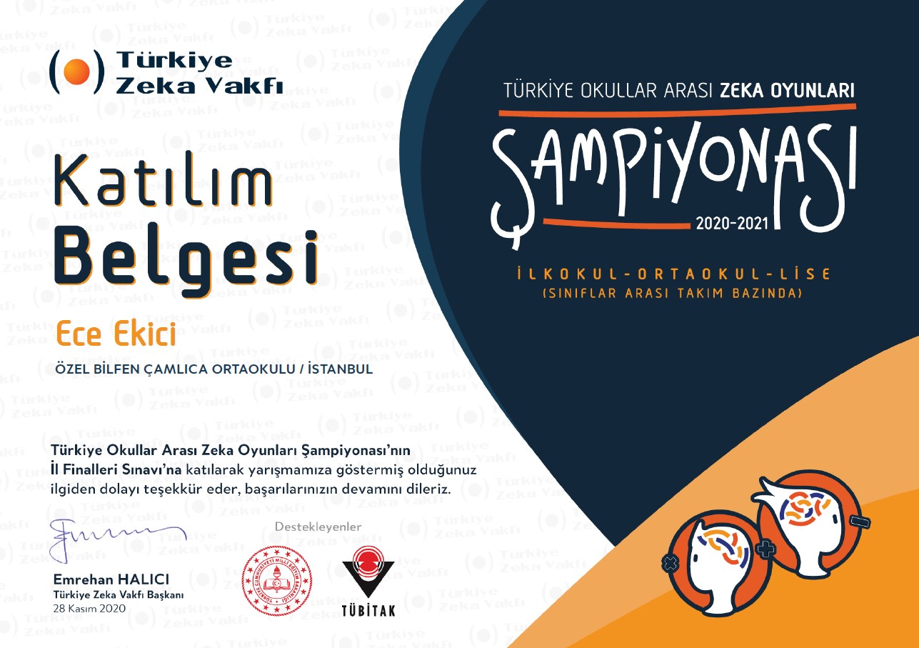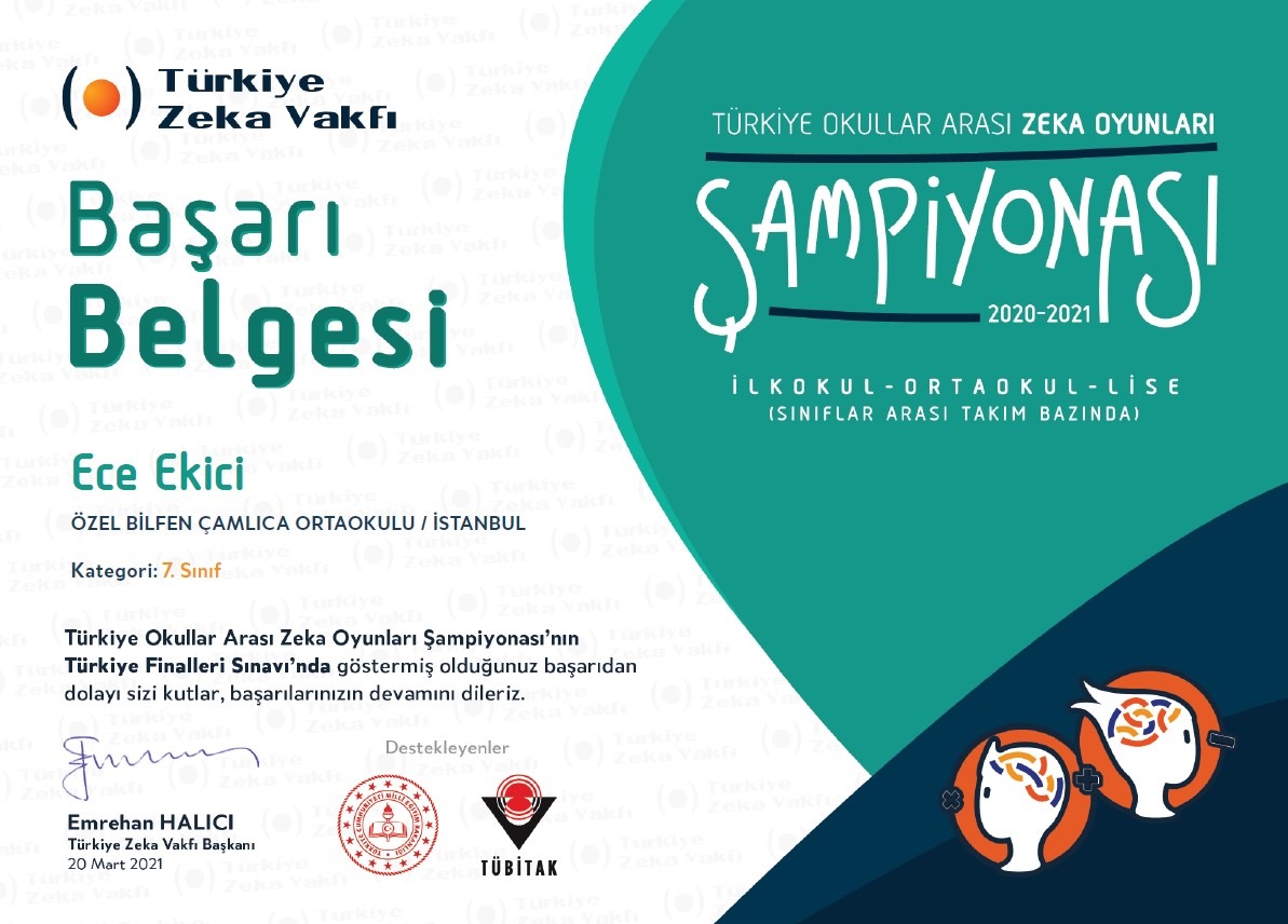 20.03.2021 Türkiye Okullar Arası Zeka Oyunları Şampiyonası - Türkiye Finalleri