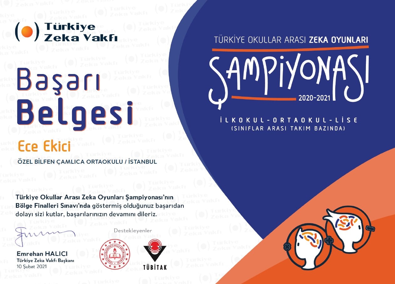 Zeka konusundaki bir çok önemli kurumdan aldığım bu geliştirici desteklerle bu konuda daha şimdiden büyük ilerleme kaydettim ve bu birikimimi üretkenliğe dönüştürdüm.