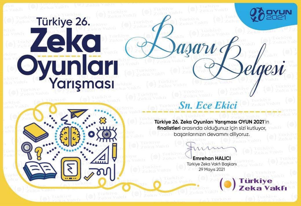 29.05.2021 Türkiye 26. Zeka Oyunları Yarışması - OYUN 2021 - Türkiye Finali